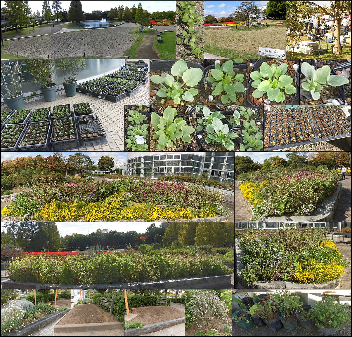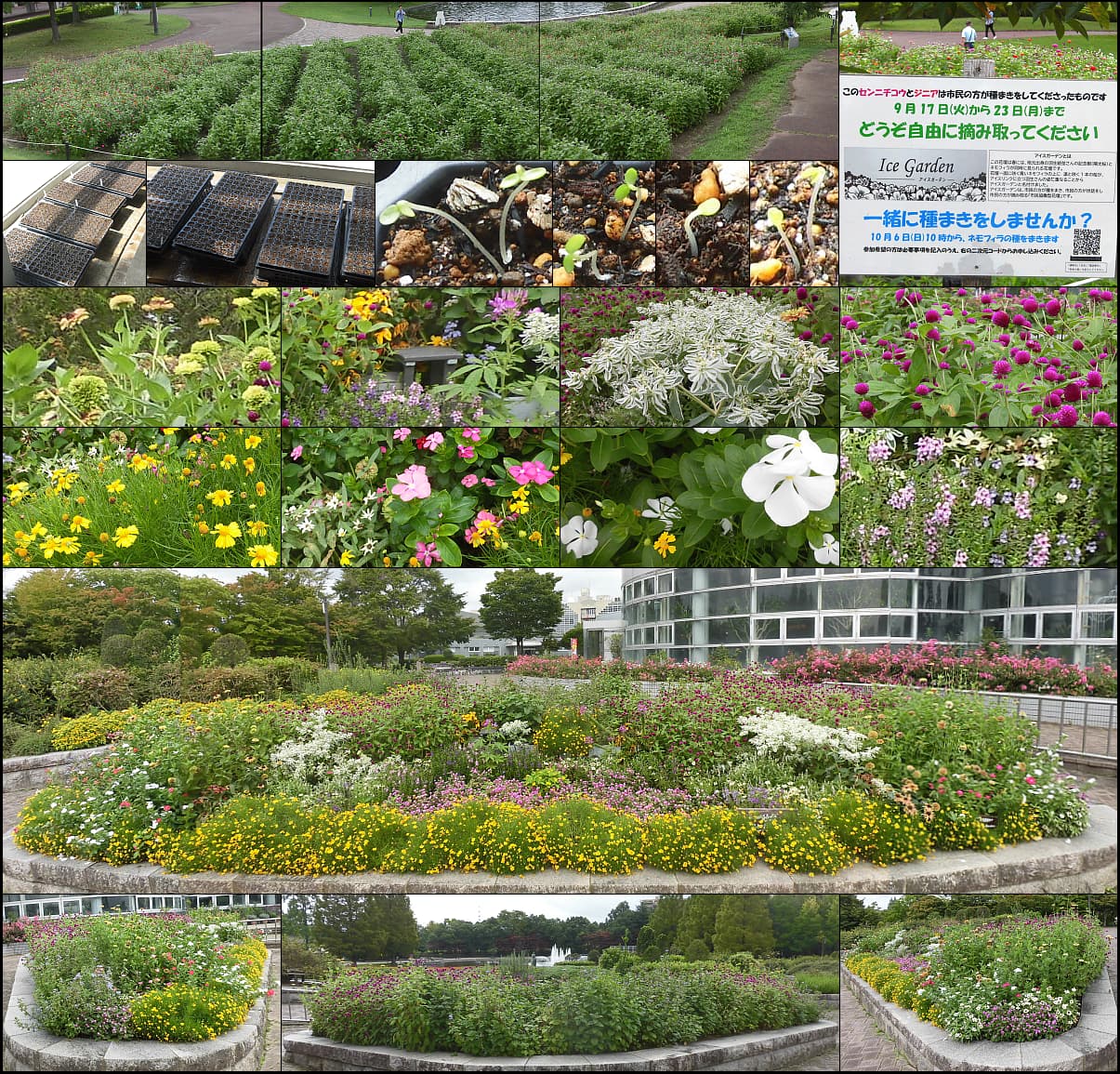 夏花壇の種まき体験会、好評裏に終了。陽光桜は葉桜に、ネモフィラ花壇は瑠璃色に。新緑祭(4/27)用に押し花マグネット・花苗を準備。