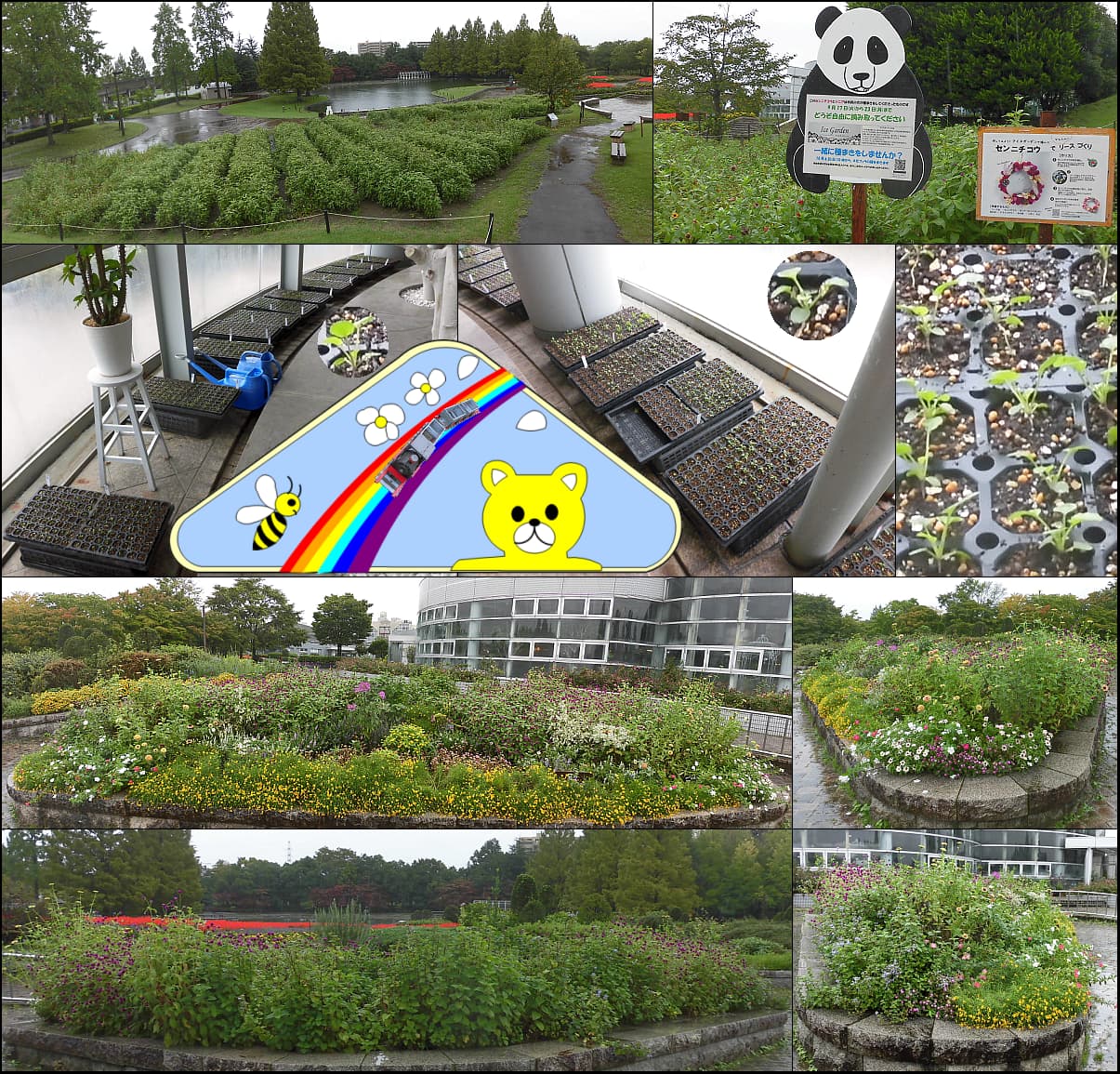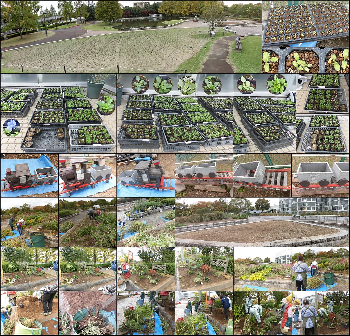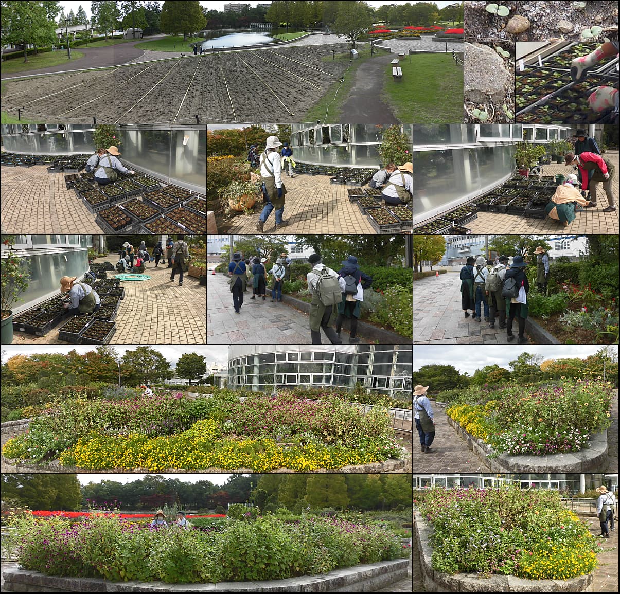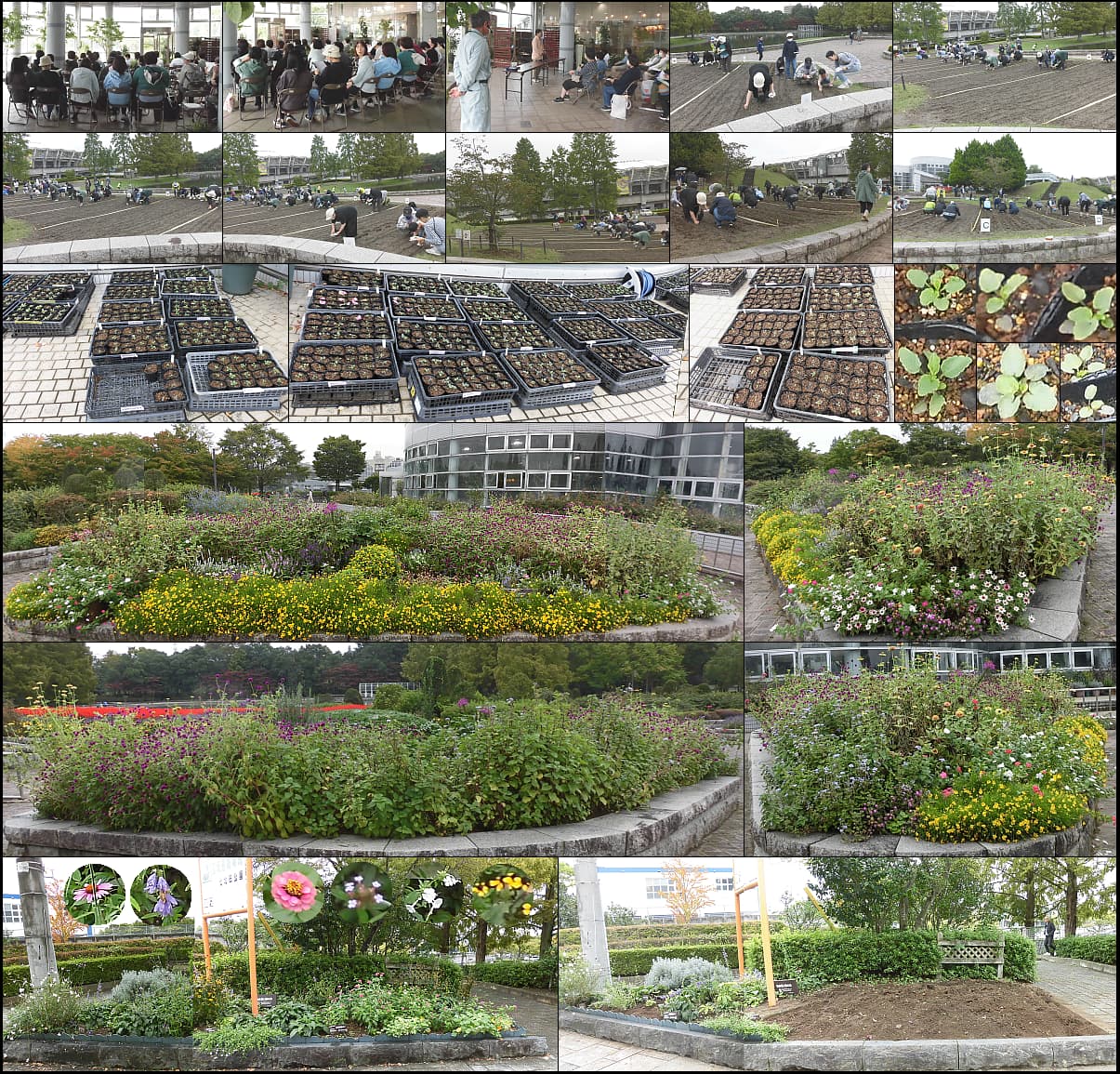 50人余りの参加者とネモフィラの種蒔き。入口花壇整備のため植栽引抜き。雨模様でも頑張る冬苗、御日様が欲しいです。